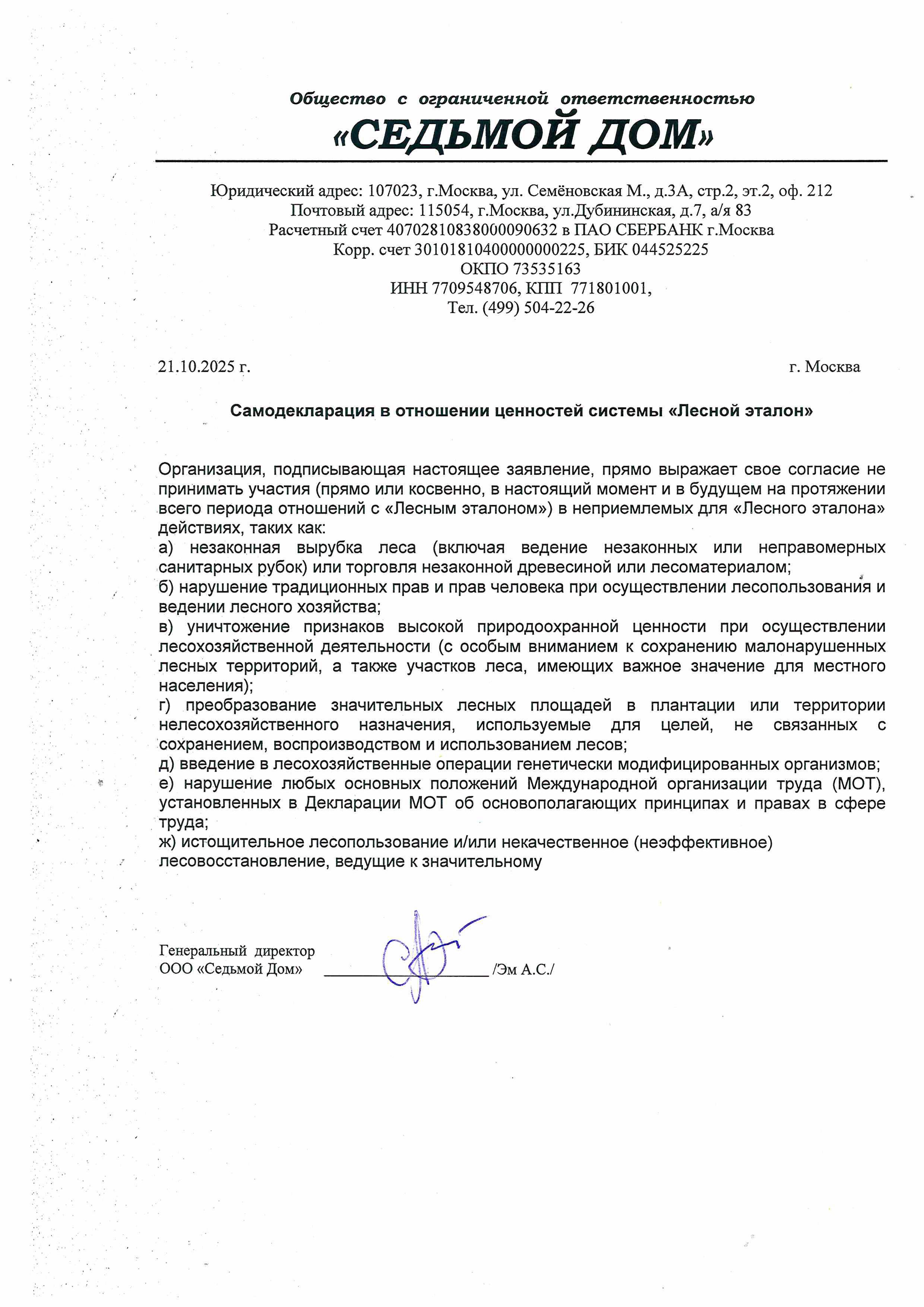 САМОДЕКЛАРАЦИЯ "ЛЕСНОЙ ЭТАЛОН"